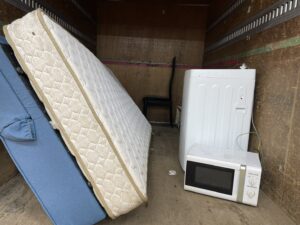 写真にある通り、一人暮らしで使われていた家電や寝具が中心でした。 大型のマットレスや洗濯機は、慣れていない方が一人で運び出すのは非常に重労働ですし、退去期限が迫っている中では焦りも生じます。
