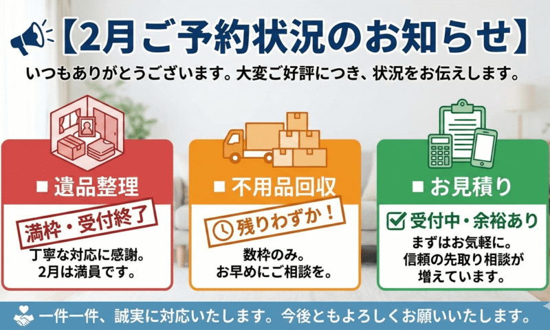 2月の作業予約は満枠となり、受付を終了いたしました。
